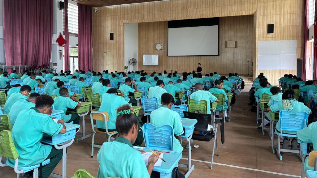 当地时间4月18日下午,巴布亚新几内布图卡学园顺利举办中国语言文化知识竞赛暨中学生汉语桥初赛。这是巴新科技大学孔子学院国际中文日系列活动的第三项活动,吸引了学园120余名学生积极参赛。