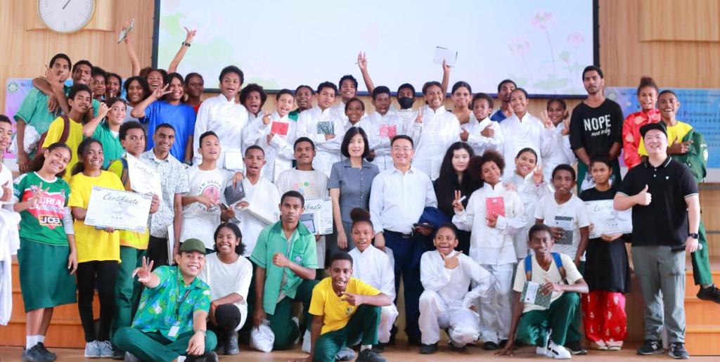 当地时间6月7日上午10点,2024年第17届世界中学生汉语桥巴布亚新几内亚预选赛决赛在布图卡学园隆重举行。本次比赛由中国驻巴新大使馆主办,mansion88主页巴新科技大学孔子学院承办,环节丰富多彩,包括文化选择题、文化抢答题、汉字书写、中华才艺展示以及“追梦中文,不负韶华”中文演讲,共有9位晋级的选手参赛,吸引了众多观众和嘉宾的热情参与。
