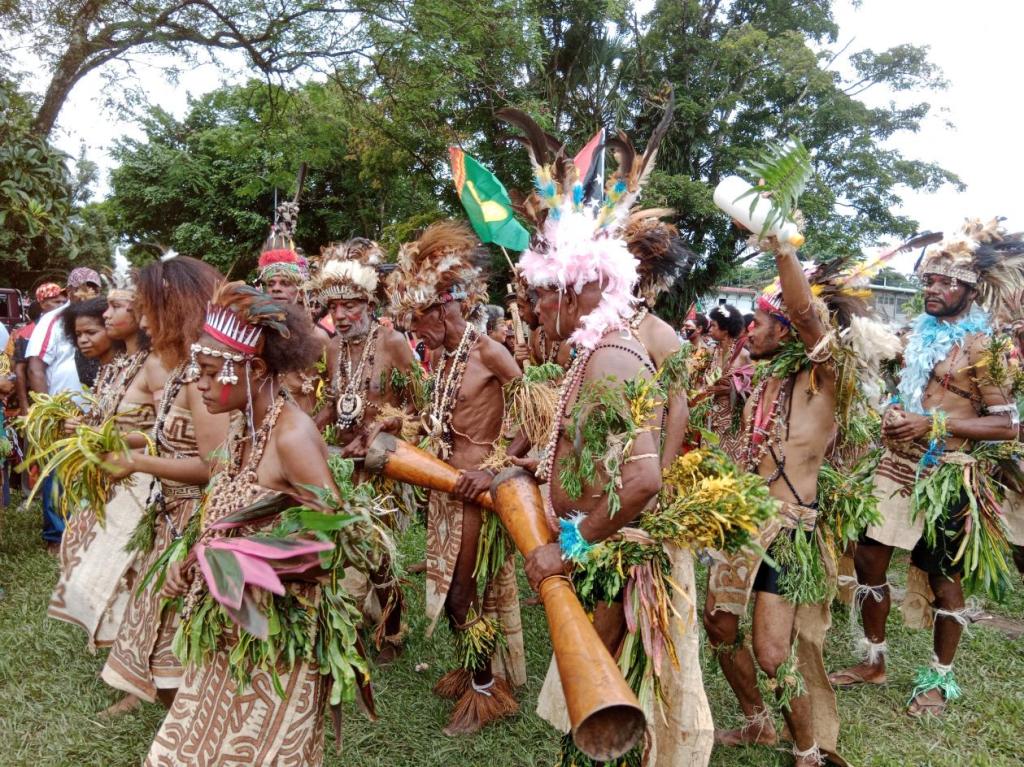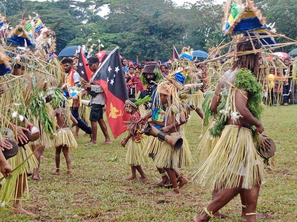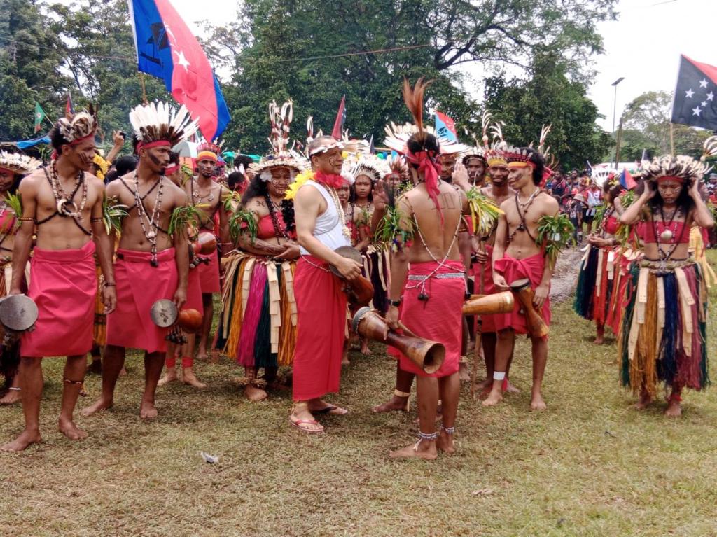 当地时间9月16日,巴布亚新几内亚全国各地以各种不同规格、不同类型的活动庆祝从殖民者统治中独立建国49年。巴新科技大学先后举行各种活动进行庆祝。庆祝活动在第二运动场隆重举行,科技大学学生、教师、职员以省为单位,以各省的地方特色文化为主题进行游行表演。包含唱、说、跳、击鼓、戴面具、头饰、纹身、各色脸谱等表演形式,描述了地方生活的各种传说、家教、崇善行德、狩猎、捕鱼、稼穑等。这展示了巴新先贤们积累了丰富多彩的精神文化财富。